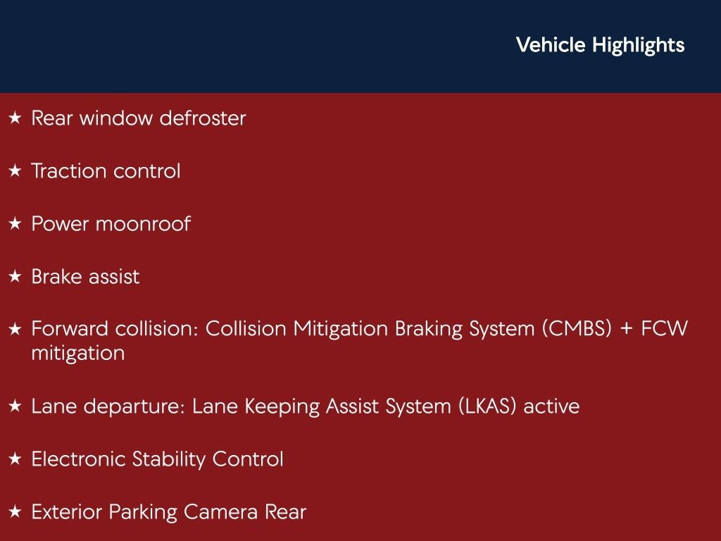 - Forward collision: Collision Mitigation Braking System (CMBS) + FCW mitigation