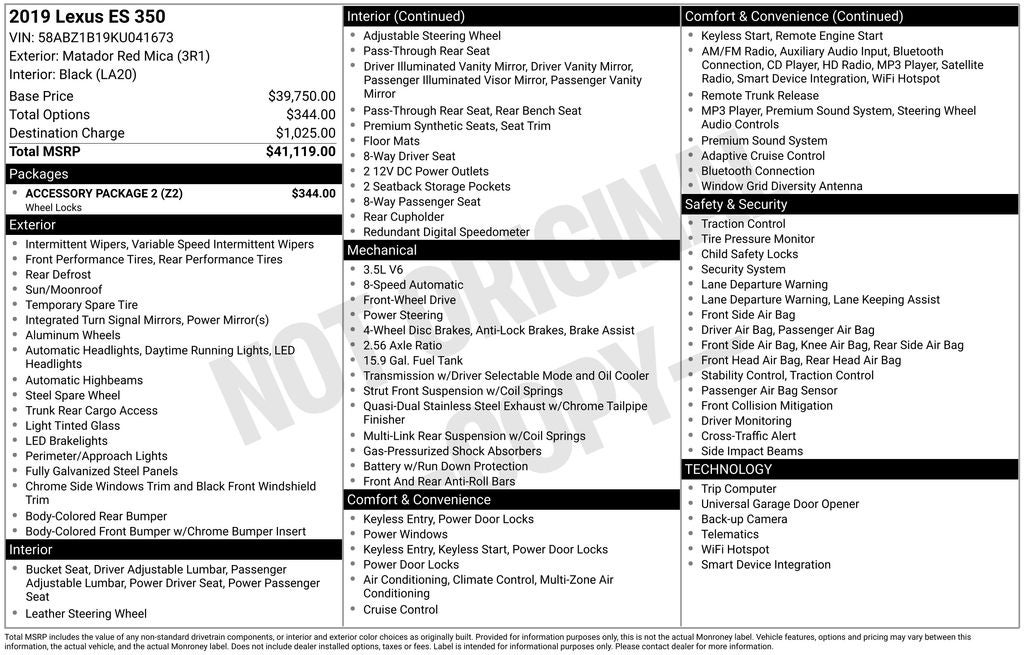 New Price! Matador Red Mica 350 FWD 8-Speed Automatic 3.5L V6 DOHC Dual VVT-i 24V Sunroof / Moonroof, Back Up Camera, Bluetooth®, Alloy Wheels, Audio Controls on the Steering Wheel, CD Stereo with Auxiliary Input, Cruise Control, Dual Climate Control, Power Sunroof, Premiuym Heated and Cooled Leather Seats, Proximity Keyless Entry, Push Button Start, Rear View Camera, Satellite Radio, Side Air Bags, Black w/Linear Espresso Wood w/Genuine Leather Seat Trim, 10 Speakers, 10-Way Power Adjustable Front Seats, 4-Wheel Disc Brakes, Air Conditioning, AM/FM radio: SiriusXM, Auto High-beam Headlights, Bumpers: body-color, CD player, Compass, Driver Seat Memory, Dual front impact airbags, Electronic Stability Control, Emergency communication system: Lexus Enform w/Safety Connect, Exterior Parking Camera Rear, Four wheel independent suspension, Front anti-roll bar, Front Center Armrest, Front dual zone A/C, Front reading lights, Fully automatic headlights, Heated & Ventilated Seats, Knee airbag, NuLuxe Seat Trim, Occupant sensing airbag, Passenger vanity mirror, Power driver seat, Power moonroof, Power steering, Radio data system, Radio: Lexus Premium Sound System w/10 Speakers, Rear anti-roll bar, Rear reading lights, Rear seat center armrest, Rear window defroster, Remote keyless entry, Security system, Speed-sensing steering, Steering wheel mounted audio controls, Traction control, Turn signal indicator mirrors, Wheels: 17 x 7.5J Split 10-Spoke Aluminum Alloy.