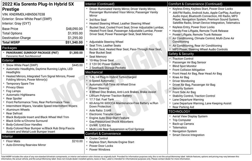 - Vehicle Name: Kia Sorento Plug-In Hybrid