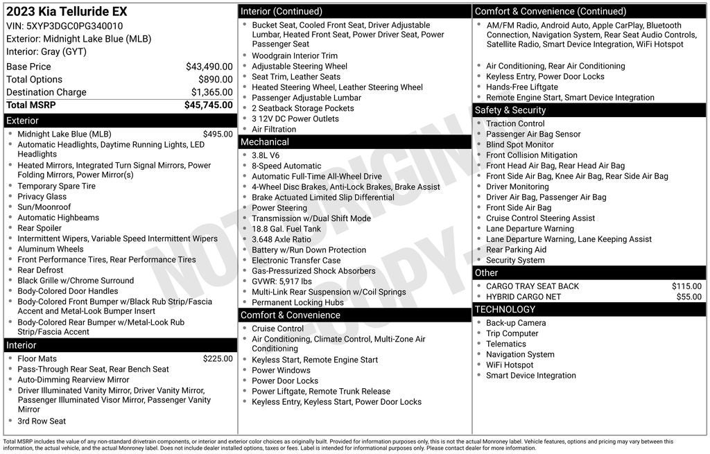 - Vehicle Name: Kia Telluride