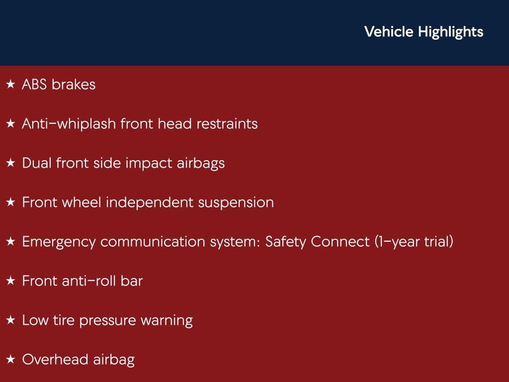 - Emergency SOS Capable Safety Connect (1-year trial) vehicle integrated emergency SOS system