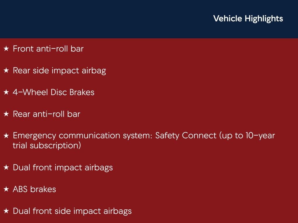 - Emergency SOS Capable Safety Connect (up to 10-year trial subscription) vehicle integrated emergency SOS system