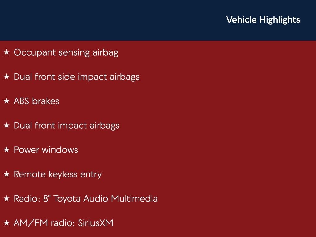 - Radio: 8" Toyota Audio Multimedia