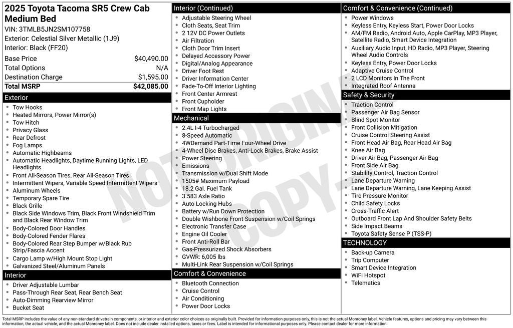 - Vehicle Name: Toyota Tacoma 4WD